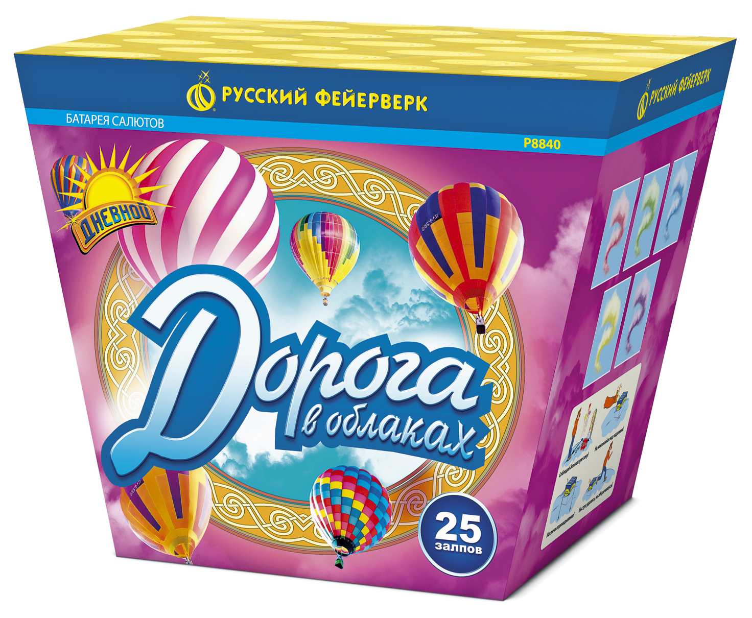 Мы предлагаем вам купить дневную батарею салютов в том случае, если вы планируете детский праздник, или любое другое мероприятие, проводимое светлое время суток. Замечательная альтернатива, великолепные красочные эффекты, основанные на пиротехнических смесях, которые при сгорании выпускают яркие разноцветные дымы, образующие в небе акварельные орнаменты, не менее интересные, чем классические пиротехнические звездки.